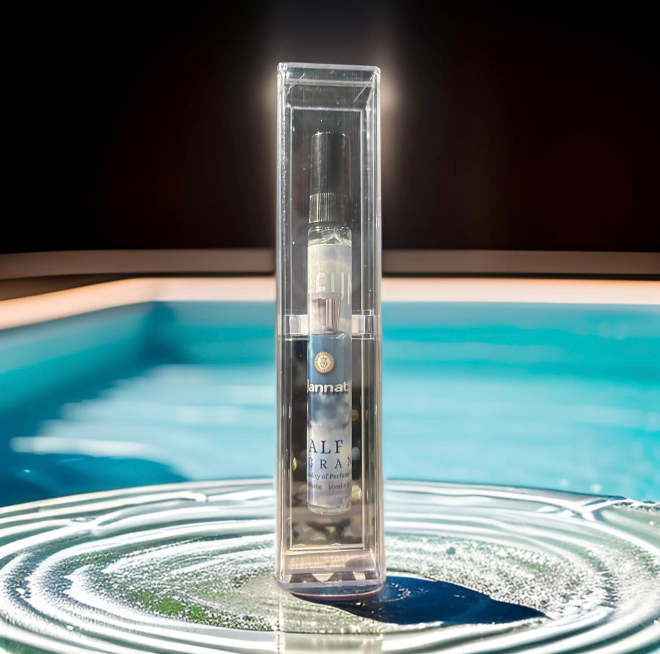 Experience serenity and bliss with Jannat - where freshness meets tranquility and peace. 10ml Pocket Perfume Unisex - It contains 10 milliliters of fragrance and is a popular size for individuals who use perfume frequently or want a larger quantity of their favorite scent with free pocket perfume.
